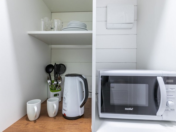 В номере есть кондиционер, плазменный телевизор.микроволновая печь, мини-холодильник,набор посуды, электрочайник, сейф, чайный набор.