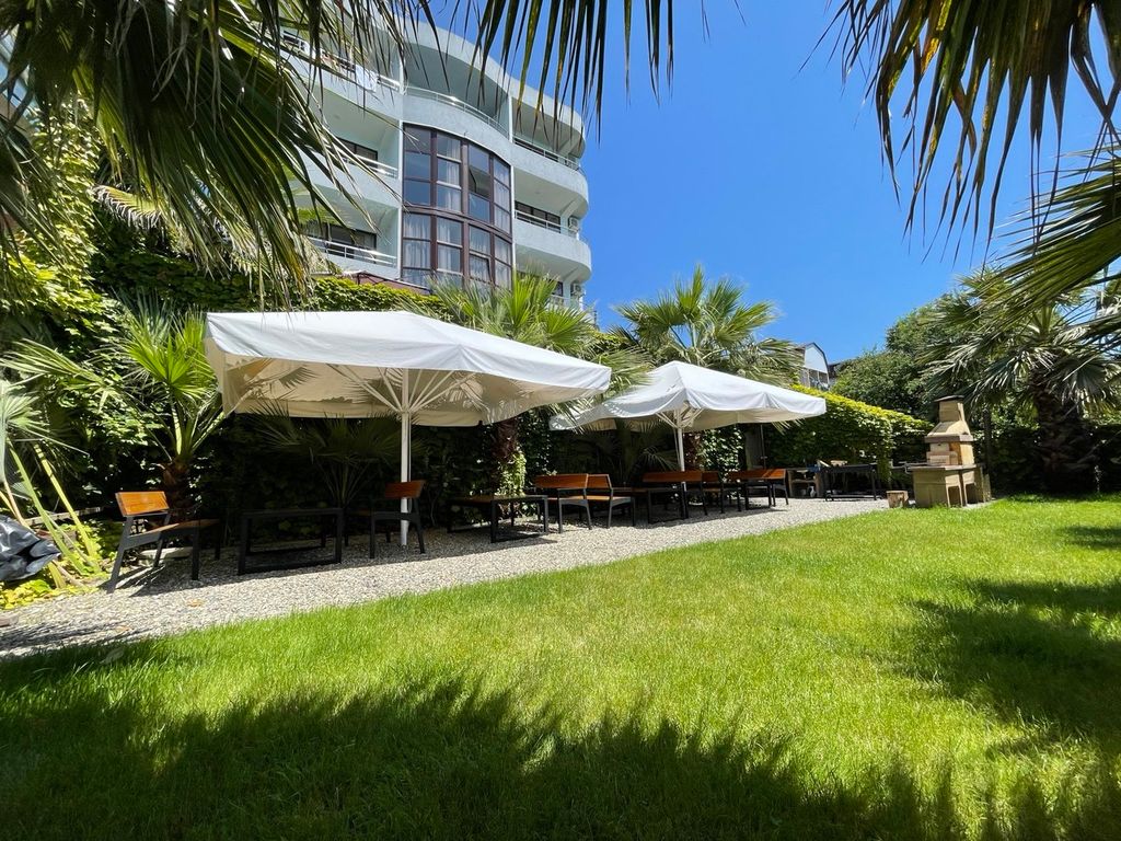 Первая береговая линия от моря, но до оборудованного пляжа нужно пройти неспешным шагом 7-10 минут.