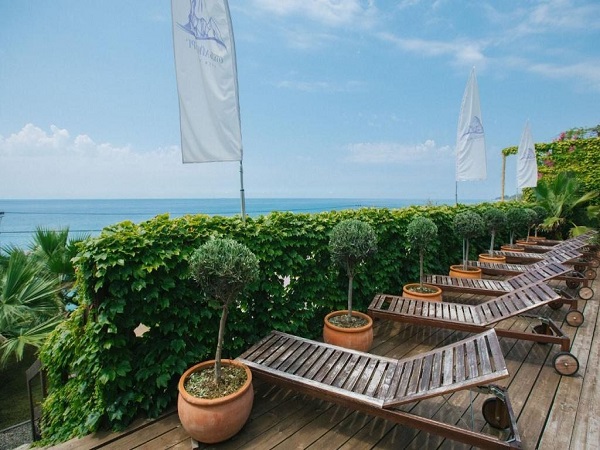 Особой гордостью отеля является терраса для загара с бассейном, оборудованная на верхнем этаже строения. Терраса с уникальным ландшафтным дизайном, вносит эксклюзивную обстановку и создает особую внутреннюю гармонию для отдыха в стиле «релакс».