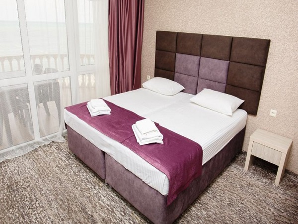 Пятиэтажный корпус отеля с белоснежными балюстрадами балконов разместился всего в 40 метрах от моря. Гостей ожидают номера Стандарт, рассчитанные на разное число гостей, и просторные двухкомнатные Семейные номера. Комнаты с лаконичным современным интерьером оснащены собственным санузлом, кондиционером и всей необходимой бытовой техникой.
