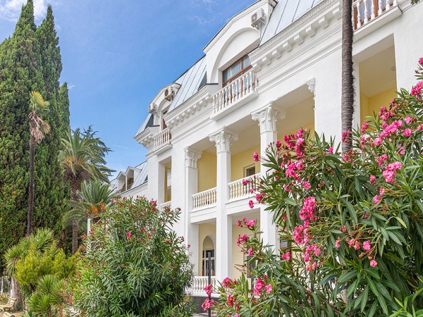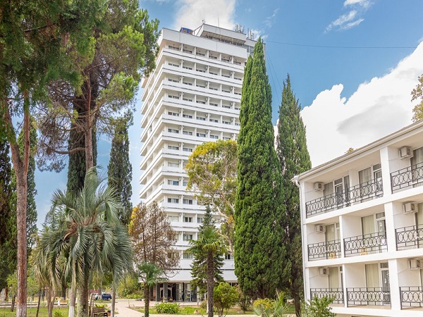 Территория отеля находится на первой береговой линии и занимает живописный парк с реликтовыми пальмами, кипарисами, эвкалиптами и прочими субтропическими растениями. Здесь располагаются прогулочные зоны, беседки и уютные уголки для отдыха. Для проживания обустроено 12 корпусов различной этажности, каждый с уникальным названием.