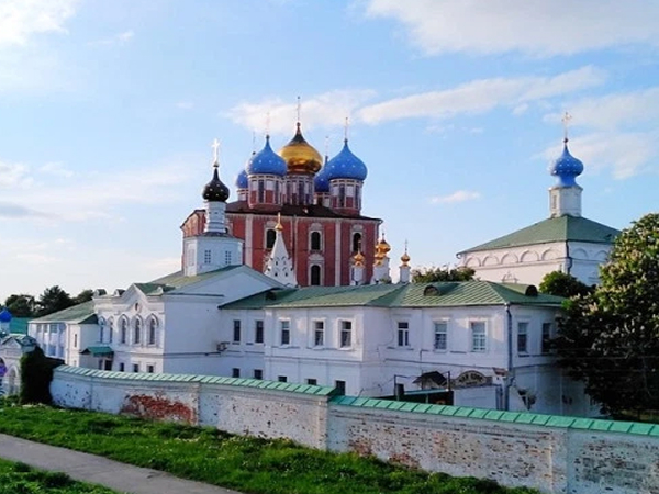 И все же главным украшением города является великолепный ансамбль Рязанского Кремля. Кремль расположен на высоком берег впадения реки Лыбедь в реку Трубеж, в древности его защищали высокие стены и земляной вал, часть которого и сегодня можно у земляного вала открываются чудесные виды на город и заокские дали. Внешний осмотр великолепного Успенского собора. Успенский собор возведен в третьей четверти XVII века величайшим «народным» архитектором Яковом Бухвостовым.