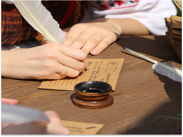 - Интерактивная программа в музее "Живая история" с мастер-классом по письму гусиными перьями.