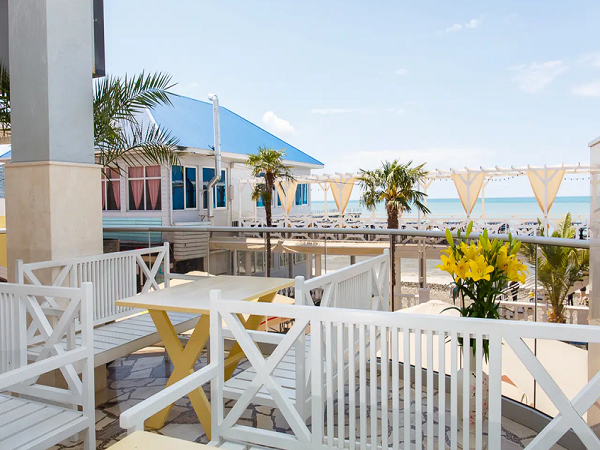 Пятиэтажный корпус отеля с белоснежными балюстрадами балконов разместился всего в 40 метрах от моря. Гостей ожидают номера Стандарт, рассчитанные на разное число гостей, и просторные двухкомнатные Семейные номера. Комнаты с лаконичным современным интерьером оснащены собственным санузлом, кондиционером и всей необходимой бытовой техникой.