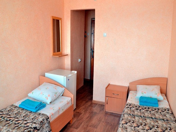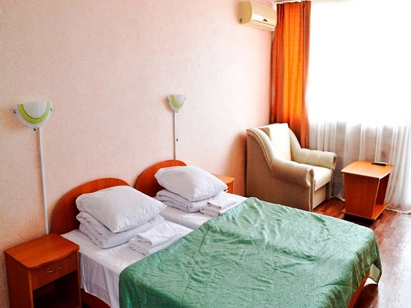 - 2-местные номера стандарт (12-14 кв.м) В номере 2 кровати 1-спальные, кондиционер. ТВ, холодильник, санузел с душевой кабиной, балкон.