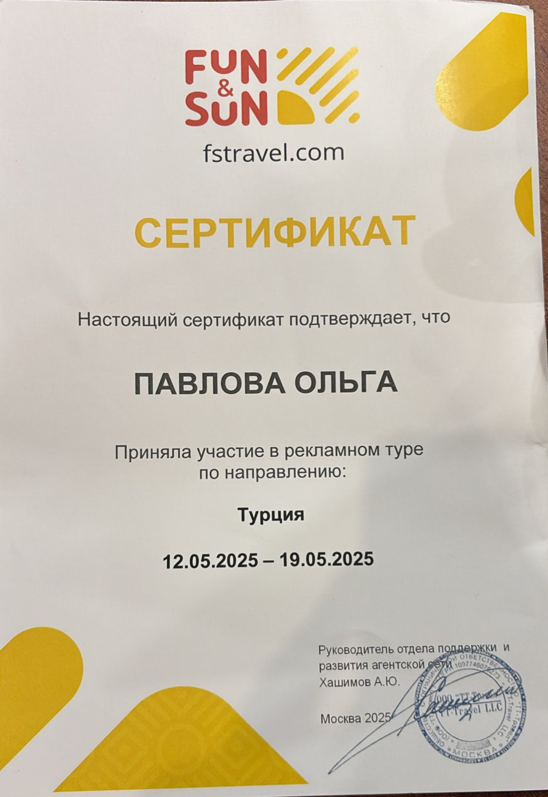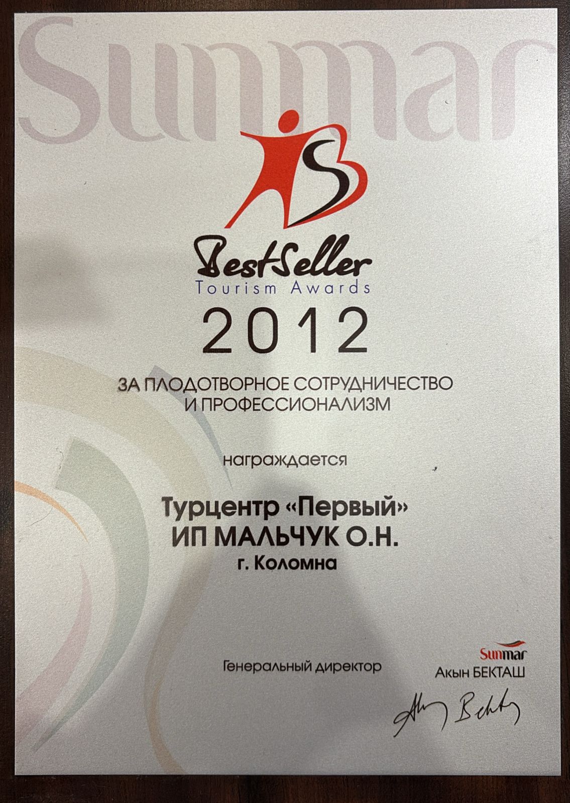 Награды от Турцентр "Первый"